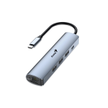 Ethernet Gigabit RJ45, 1 puerto USB-C (carga) y 3 puertos USB-A 3.0 (datos)